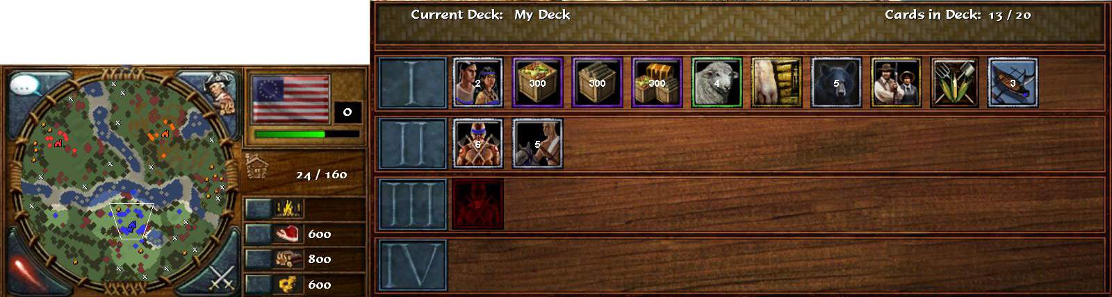در ابتدا تمامی كارت ها در اختیار شما نبوده و مقدماتی لازم است تا آنها را بدست آورید. به مرور و با پیشرفت شما در مراحل مختلف و ارتقاء به سطوح بالاتر امکان استفاده از كارت های مختلف مرتبط با موقعیتهای مختلف فراهم می شود. هر تمدنی باید 120 كارت جمع آوری کند که بسیاری از آنها با ارتقاء شهر مرکزی فعال شده و شما فقط حداکثر 20 كارت در هر بازی را مورد استفاده قرار می دهید.