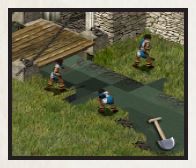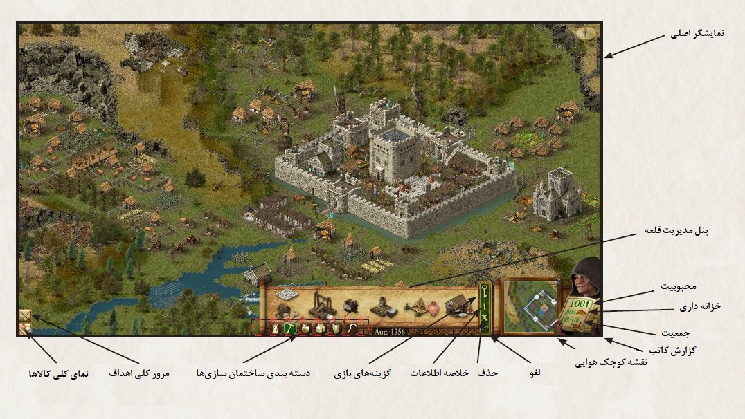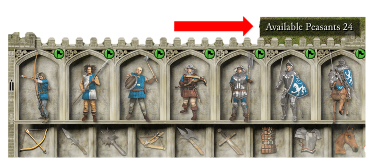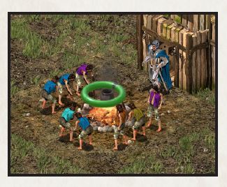 دایره سبز دور آتشدان قلعه، رشد جمعیت را نشان میدهد. هر بار که پر میشود، یک دهقان جدید به قلعه میآید. اگر سبز ثابت بماند، دهقانان یا به دلیل کمبود فضای زندگی یا به دلیل کمبود شغل، آمدنشان را متوقف کردهاند.