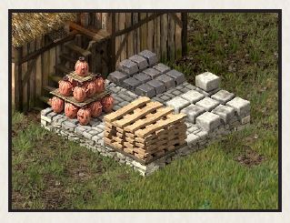 جایگذاری ساختمانها در رابطه با انبار و ذخیره، مستقیماً بر میزان کالاهای تولید شده در هر ساختمان تأثیر میگذارد، زیرا هر کارگر باید به/از انبار به ایستگاه کاری خود و سپس به انبار برود. تولید مواد غذایی و به ویژه تولید سلاح باید به گونهای قرار داده شوند که فاصله کمی از انبار و انبارهای غله/زرادخانهها داشته باشند. مسافتهای پیادهروی زیاد میتواند سرعت تولید را نصف یا بدتر کند. سعی کنید هیچ فضایی را هدر ندهید، اما مطمئن شوید که مسیری برای کارگران برای ورود به ساختمانها و رفتن به/از انبار باقی بگذارید.