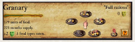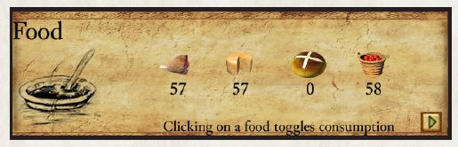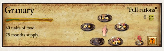 با افزایش جمعیت، باید تولید غذا را افزایش دهید. هر دهقان با جیره غذایی معمولی، 0.2 واحد غذا در ماه مصرف میکند. واحدهای نظامی غذا مصرف نمیکنند.