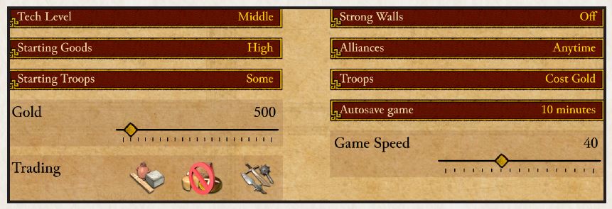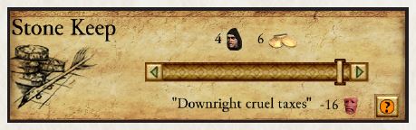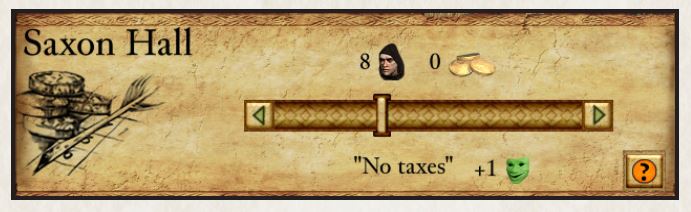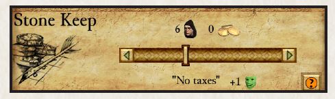 مالیاتها به صورت خطی با جمعیت مقیاس میشوند. بنابراین «مالیاتهای پایین» صرف نظر از جمعیت، ۰.۶ طلا به ازای هر دهقان فراهم میکنند.