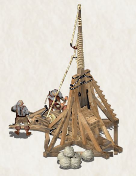 منجنیقها در هر ضربه 240 آسیب به برجها وارد میکنند (با احتمال کمتری برای وارد کردن 180 آسیب). اما همچنین 3 برابر کندتر از سنگ اندازها حمله میکنند و ثابت هستند. آنها به 3 مهندس نیاز دارند و همچنین 150 طلا هزینه دارند.