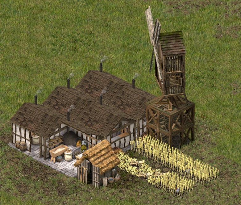 این اثر هنگام تولید نان، چند برابر است، زیرا هم مزارع گندم و هم نانواییها تحت تأثیر این تقویت قرار میگیرند (آسیابها تحت تأثیر قرار نمیگیرند). افزایش 150 درصدی از هر دو منجر به افزایش کلی 225 درصدی تولید نان میشود (1.5*1.5 = 2.25). با این حال، این امر به نسبت متفاوتی از مزارع گندم به نانواییها نیاز دارد. سپس میتوان تمام محصول مازاد را برای سود بیشتر فروخت! البته، مالیات کمتر و جیره غذایی اضافی برای مقابله با رضایت -5 مورد نیاز خواهد بود.