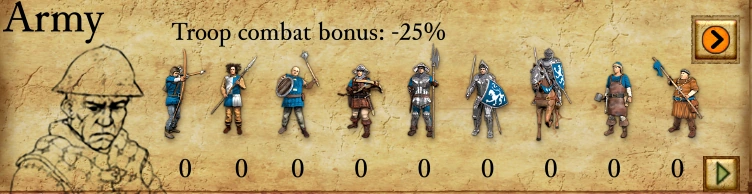 یک بازیکن با خواباندن هیزمشکنها درست بعد از زمان صلح، ۳۴ دهقان بیکار اضافی دریافت میکند و این باعث میشود بلافاصله ۵۸ مرد گرزدار ایجاد شود.
