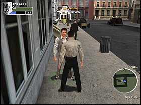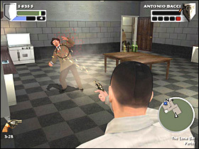 همراه با کلمنزا و پائولی گاتو به رستوران بروید. سلاحی که در آنجا برای شما گذاشته شده را بردارید، به طرف جهت معین شده بر روی نقشه حرکت کنید. از پله ها بالا بروید، دینامیتها و Rifle را بردارید. دو نفر از گانگسترها به دنبال یک آشپز هستند. اگر او را نجات بدهید، او اتاقی را به شما نشان می دهد که وسایل جالبی را در آن پیدا می کنید. با کلمنزا صحبت کنید و سپس به خیابان بروید.