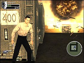 بزودی به کافه می رسید (کافه ای که باید منفجر شود) وارد آن شوید. در آنجا با افراد دشمن درگیر می شوید. پشت میز بیلیارد بخزید و به گانگسترها حمله کنید. به طبقه اول بروید. مراقب اشیایی که به طرف شما پرتاب می شوند باشید. به اتاق نوشیدنی ها بروید. (میز بیلیارد در آن قرار دارد). بعد از بین بردن افراد دشمن، بمب را در نقطه آبی رنگ جایگذاری کنید. حال به سرعت از آنجا خارج شوید. نمایشگر بالای صفحه زمان باقیمانده تا انفجار را نمایش می دهد. از ساختمان خارج شوید و شاهد انفجار باشید.