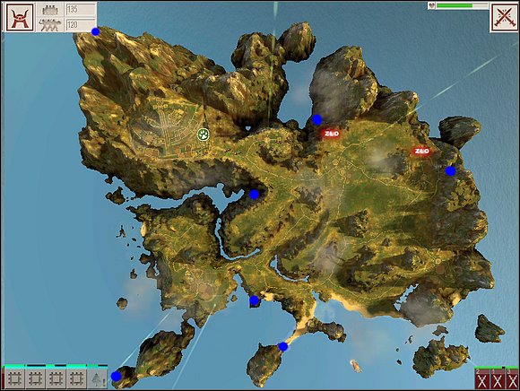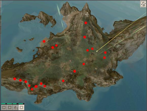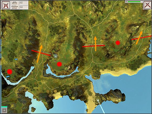 در این سرزمین نیروهای دشمن پراکنده اند (نقاط قرمز روی تپه ها) او آنها را از بین می برد و در نتیجه شما برای تصرف سرزمین با مشکلی روبرو نمی شوید.