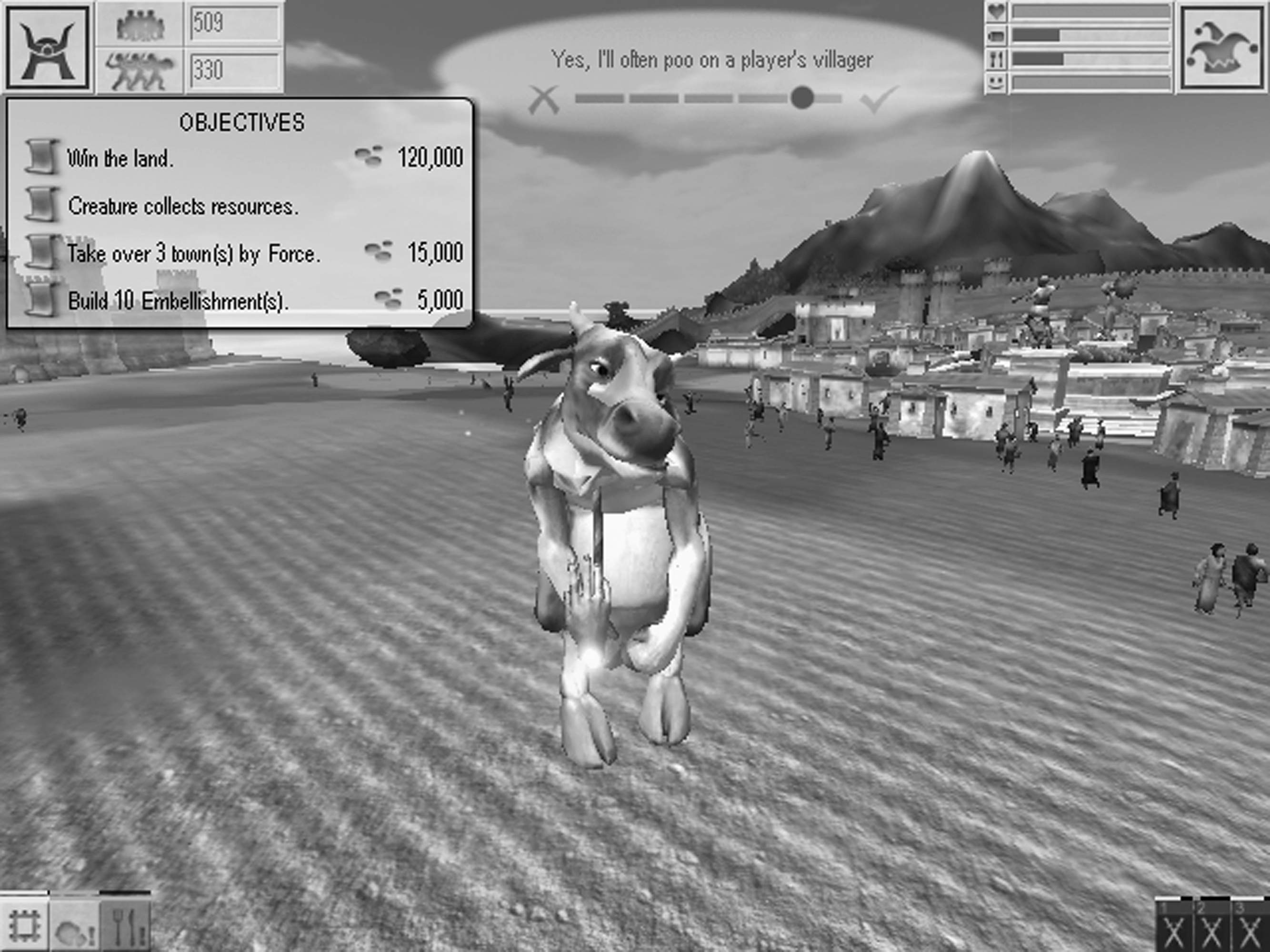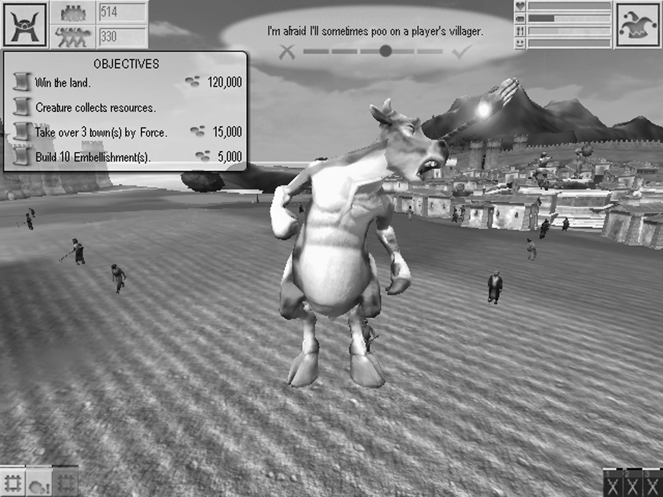 در ابتدای بازی با کمک دو راهنمای خیر و شر خود و از میان پنج جانور یکی را انتخاب می کنید. این پنج جانور که عبارتند از شیر، گاو ، گرگ ، میمون و ببر دارای توانایی های کاملا یکسان بوده و میزان قدرت آنها و قابلیت هایشان تنها به نوع تربیتشان از سوی شما بستگی دارد.