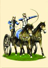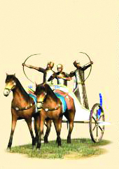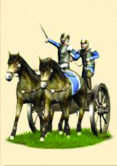 15- Chariot Archers شبیه گروه قبلی بوده با این تفاوت که نیروهای کماندار را حمل می کند و از آنجایی که ارابه توسط دو اسب کشیده می شود به دام انداختنشان حتی برای سواره نظام کار دشواریست.