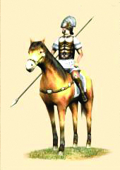 20- Equites سواره نظام مسلح به نیزه که می توانند پیاده نظام سبک دشمن را وادار به عقب نشینی کنند. بهتر است از آنها برای پشتیبانی از کمانداران و پیاده نظام در مقابل نیرو های مهاجم استفاده نمود. هزینه ساخت نسبتاً مناسبی داشته و فقط نیزه و سپر دارند.