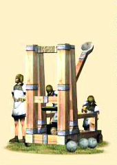 27- Ballistas با قدرت پرتاب گلوله های آتشین وسیله ای قوی است. از آن برای نابودی استحکامات و خطوط دفاعی دشمن استفاده می شود. هزینه ساخت مناسبی داشته و به دلیل نداشتن قدرت دفاعی در پشت نیروهای خودی قرار می گیرد.