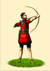 15- Roman Archers از آنان به عنوان نیروهای پشتیبانی برای پیاده نظام استفاده می شود.در واقع نقش مکمل را در ارتش روم دارند. قدرت پرتاب تیرهای آتش زا و حرکت سریع از قابلیتهای آنهاست. هزینه ساختشان پایین بوده ولی نباید در نبردهای رو در رو از آنها استفاده کرد چون بسیار ضعیف و آسیب پذیرند.