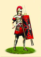 4- Hastati نیروهای جوان لژیون سپاه روم که در جنگها خط مقدم را تشکیل می دهند وظیفه آنها از پای در آوردن نیروهای دشمن و عقب نگه داشتن آنها تا حمله بعدی می باشد. مسلح به دو نیزه بوده که در فاصله های نزدیک به دشمن پرتاب می کنند. به دلیل مجهز بودن به شمشیر، کلاه خود، سپر بزرگ و زره هزینه ساخت بالایی دارند.